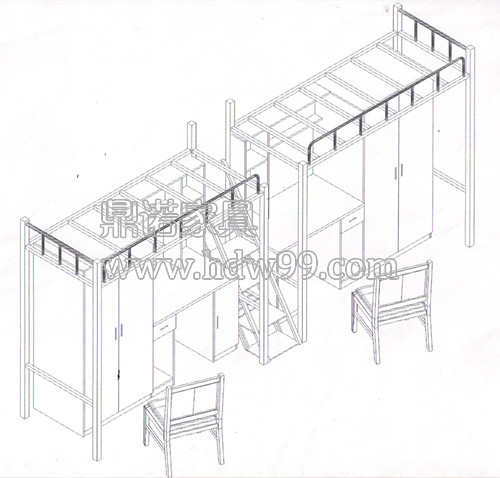 1、双人上铺床及单人上铺床均使用宝钢优质冷轧钢板,单人床采用不锈钢材质的钢板;立柱:Φ38mm*1.5mm;床铺主管:30*50*1.5方管;床头横管、横撑及竖管:25*25*1.2方管;单铺4根横撑;上铺护栏:20*20*1.2方管经数控弯管设备弯曲成型;爬梯:25*25*1.2方管;踏板:采用1.5mm优质冷轧钢板一次性压成型防滑脚踏;脚套:采用PP工程塑胶注塑成型;连接:靠墙横撑居中位置需焊一固定架,采用Ф8国标高强度膨胀螺丝连接,配防脱螺母。