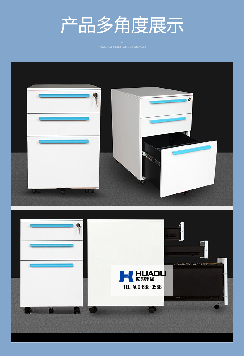 蓝色扣手活动柜