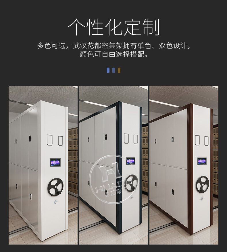 智能密集架,智能操作系统;智能档案存储解决方案;无序存放,有序管理。